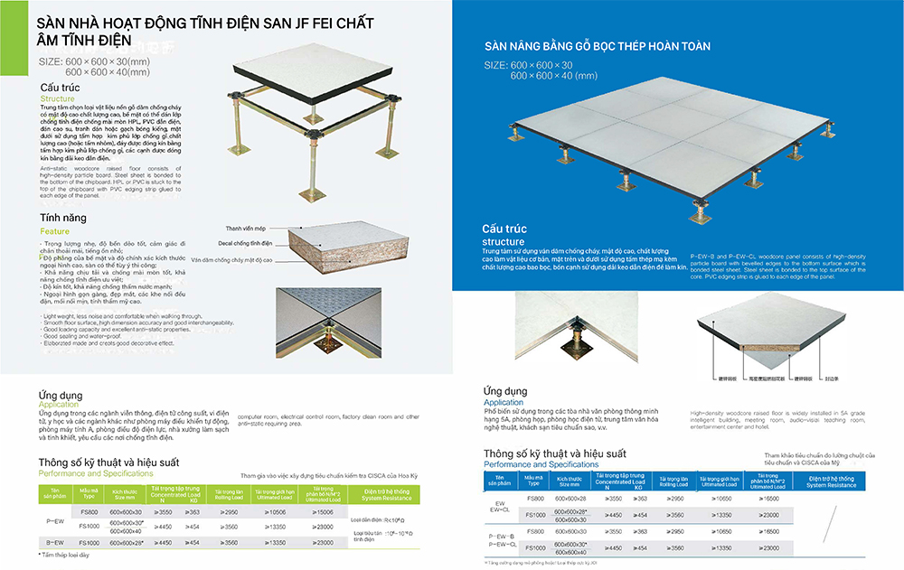 Sàn nâng chống tĩnh điện toàn thép không viền dẫn tĩnh điện bốn cạnh