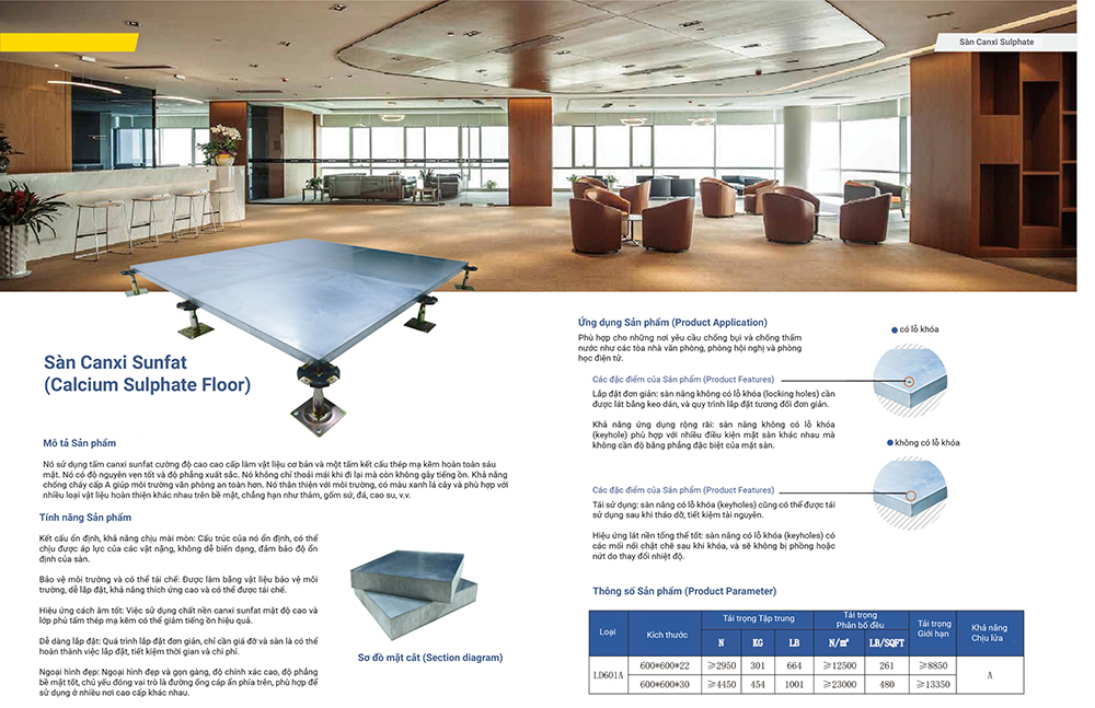 Sàn chống tĩnh điện bằng canxi sunfat