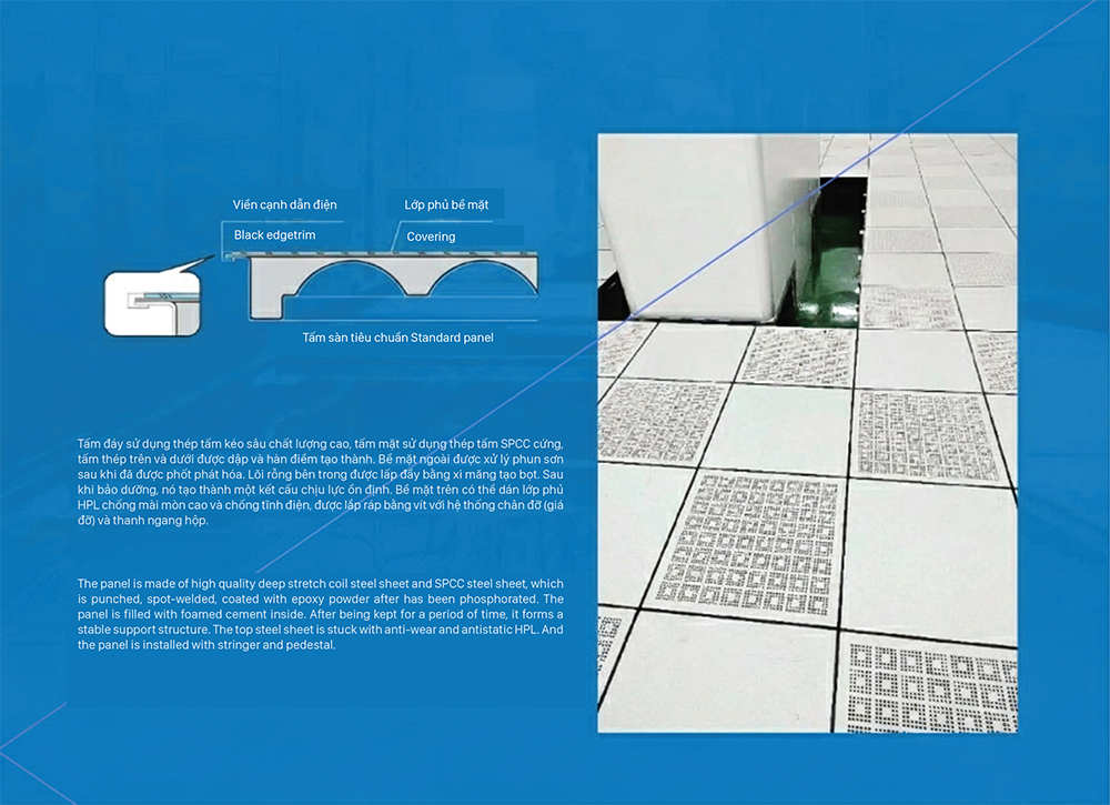 Sàn nâng chống tĩnh điện toàn thép không viền dẫn tĩnh điện bốn cạnh